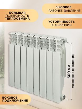 Радиатор биметалл, 500х80 мм, Rommer, Optima, 8 секций