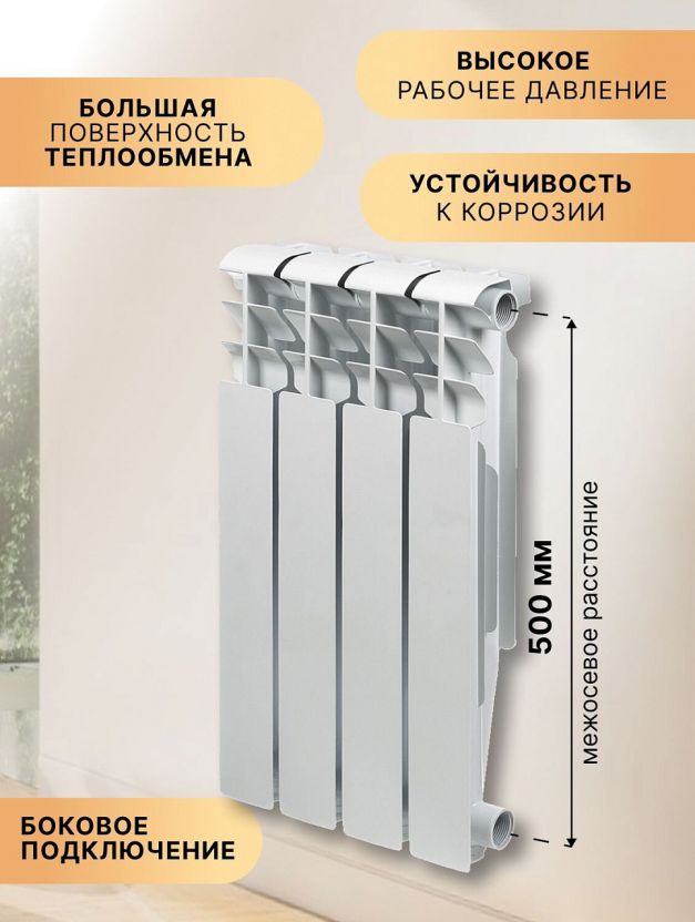 Биметаллические радиаторы отличаются высокой прочностью благодаря горизонтальному и вертикальному коллектору, изготовленному из высоколегированной стали, а их основными достоинствами являются высокая теплоотдача, высокое рабочее давление и устойчивость к химическому составу теплоносителя.