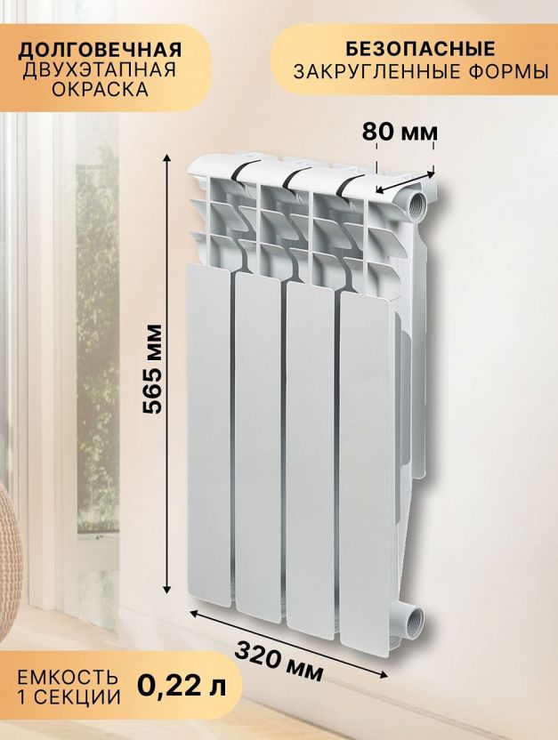Радиатор биметалл, 500х80 мм, Tropic, 4 секции, 7601.016