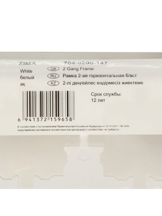 Рамка двухпостовая, горизонтальная, 156х85х11 мм, пластик, белая, без вставки, Lezard, Zima, 704-0200-147