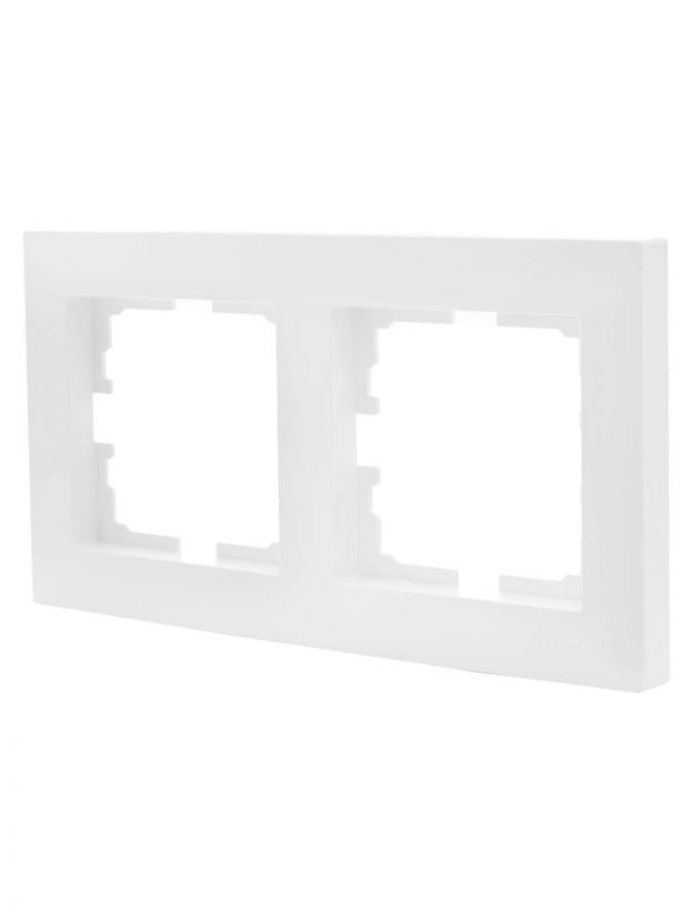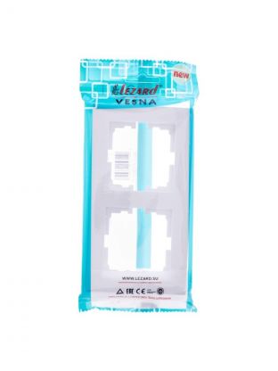 Рамка двухпостовая, горизонтальная, пластик, белая, без вставки, Lezard, Vesna, 742-0200-147