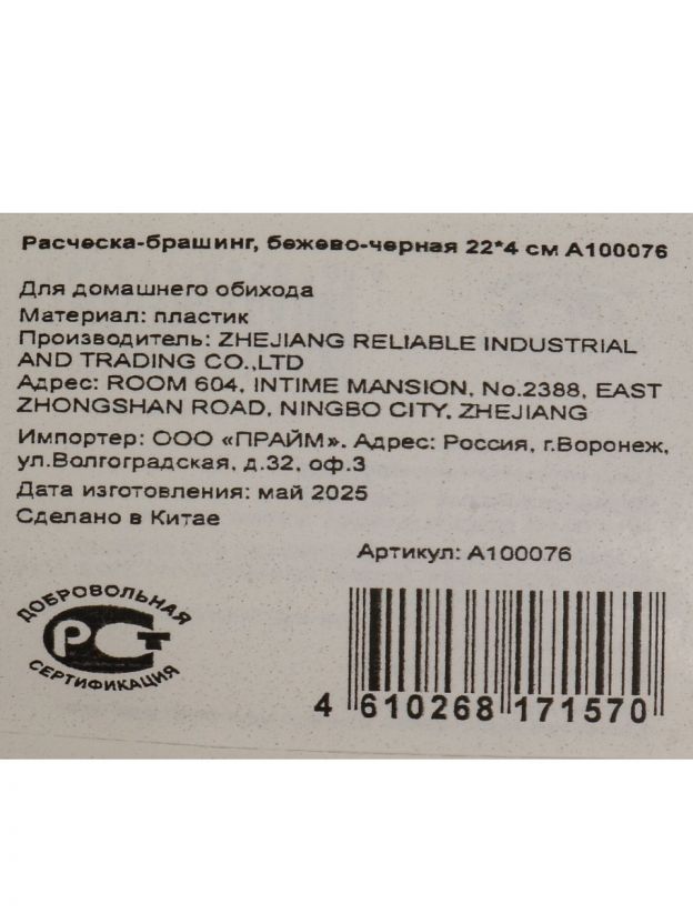 Расческа брашинг 22х4 см беж-чер A100076: идеально ровные укладки, быстрый объём, минимальное повреждение волос — экономьте время и защищайте локоны. Почему выбирают: Профессиональный брашинг с оптимальным диаметром для создания объёма и гладкости без пушения Компактный размер 22х4 см — удобно брать с собой, корпус из термостойкого пластика, рабочая часть устойчива к деформации Подходит для укладки дома, на даче, а также как практичный подарок для заботы о волосах Расческа брашинг 22х4 см — универсальный инструмент для быстрой сушки феном, создания прикорневого объёма и идеальной укладки. Благодаря эргономичной форме и лёгкому весу, брашинг легко использовать даже одной рукой, что делает его отличным выбором для самостоятельного стайлинга. Часто спрашивают: «какой брашинг лучше выбрать для средней длины волос?» — оптимальный диаметр 4 см подходит для большинства типов волос, обеспечивая бережное расчесывание и предотвращая спутывание. В отличие от стандартных расчёсок, этот брашинг ускоряет сушку за счёт специальных отверстий для циркуляции воздуха и не перегревает пряди. Корпус выполнен из плотного пластика с устойчивым покрытием — срок службы выше среднего. «Подходит ли для длинных волос?» — да, благодаря удлинённой рабочей поверхности, расчёска справляется даже с густыми локонами, не вырывая и не ломая их. Если вы ищете, какой брашинг купить недорого для дачи или поездок, эта модель сочетает компактность, прочность и лёгкость ухода. Просто промойте расчёску под струёй воды — и она снова готова к использованию. Оформите заказ сейчас — выгодная цена, быстрая доставка и гарантия качества. Заботьтесь о волосах с профессиональным инструментом, который прослужит долго! Частые вопросы: Какой размер брашинга выбрать для средней длины волос? Размер 22х4 см универсален: диаметр 4 см подходит для волос до плеч и чуть ниже, позволяет быстро создать объём у корней и аккуратные локоны. В чём выгода использования брашинга с пластиковым корпусом? Термостойкий пластик не нагревается при сушке феном, не электризует волосы и легко моется, что важно для частого домашнего и дачного применения. Подходит ли этот брашинг для подарка? Да, благодаря универсальному цвету беж-чер и компактным размерам, расчёска станет отличным подарком для женщин и подростков, заботящихся о здоровье волос.