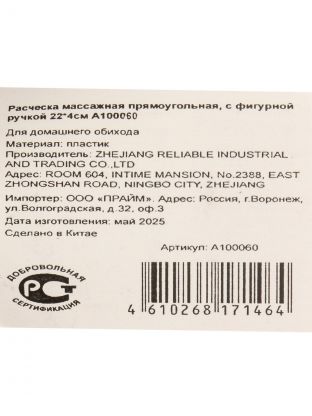 Расческа массажная 22х4 см: бережный уход за волосами, расслабляющий массаж кожи головы и стильная фигурная ручка для ежедневного комфорта Почему выбирают: Фигурная эргономичная ручка — удобно держать даже во влажных руках, не скользит Оптимальный размер 22х4 см — легко брать с собой, подходит для длинных и средних волос Универсальность — отличный выбор для дома, дачи, путешествий и в качестве подарка Массажная расческа с прямоугольной формой и фигурной ручкой — это не просто аксессуар, а решение для тех, кто ищет, какую расческу выбрать для бережного ухода за волосами. Благодаря эргономичной рукоятке и оптимальным размерам, она подходит для ежедневного использования дома, на даче или в поездках. Массажные зубья мягко стимулируют кожу головы, улучшая кровообращение и предотвращая ломкость волос — идеальный вариант для тех, кто заботится о здоровье волос. Часто спрашивают, чем отличается массажная расческа от обычной. В отличие от стандартных моделей, массажная щетка не травмирует волосы и подходит даже для чувствительной кожи головы. Если вы ищете, как использовать массажную расческу, просто аккуратно проводите ею по влажным или сухим волосам — она легко распутывает пряди, не вызывая дискомфорта. Подходит ли для густых или тонких волос? Да, универсальная конструкция обеспечивает мягкое расчесывание и массаж для любого типа волос. В сравнении с аналогами, эта модель выделяется прочной фигурной ручкой и компактностью — удобно брать с собой, легко мыть, подходит для подарка или ежедневного использования всей семьёй. Если вы ищете, какую массажную расческу купить недорого для дачи или дома, обратите внимание на этот вариант — он сочетает доступную цену и высокую функциональность. Закажите массажную расческу 22х4 см прямо сейчас — получите универсальный инструмент для ухода за волосами с быстрой доставкой и гарантией качества. Частые вопросы: Какой размер у массажной расчески и удобно ли её брать с собой? Размер расчески — 22х4 см. Компактна, помещается в сумке или косметичке, подходит для путешествий и повседневного использования. Для чего подходит массажная расческа с фигурной ручкой? Используйте для мягкого массажа кожи головы, расчесывания длинных и средних волос, ухода за прядями дома, на даче, в поездках или в подарок. Из какого материала выполнена расческа и как долго она служит? Корпус изготовлен из прочного пластика с фигурной ручкой, рассчитан на длительное использование без деформации и потери внешнего вида.