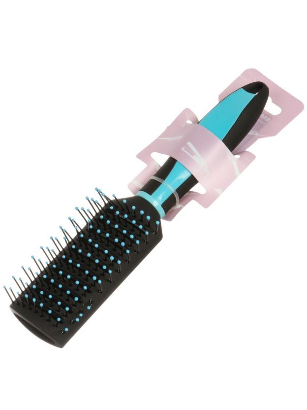 Расческа массажная, 24х4.5 см, пластик, пластиковая ручка, прямоугольная, черно-голубая, A100026