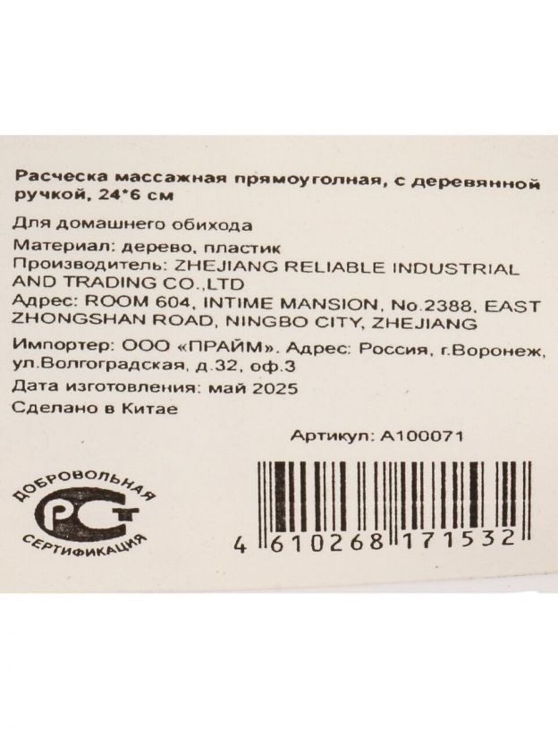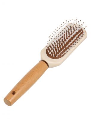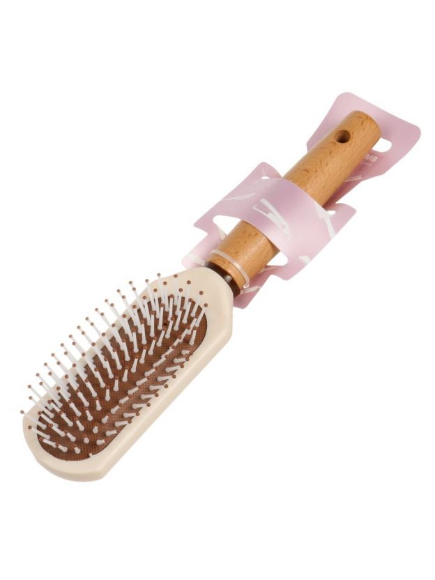 Расческа массажная, 24х6 см, пластик, деревянная ручка, прямоугольная, A100071