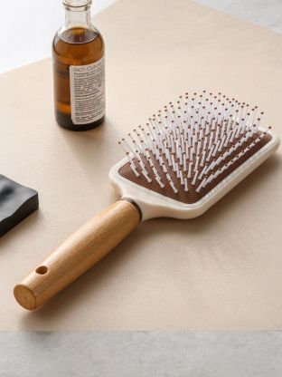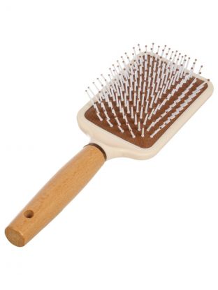 Эффективный массаж и деликатное распутывание волос — благодаря эргономичной квадратной форме и деревянной ручке
