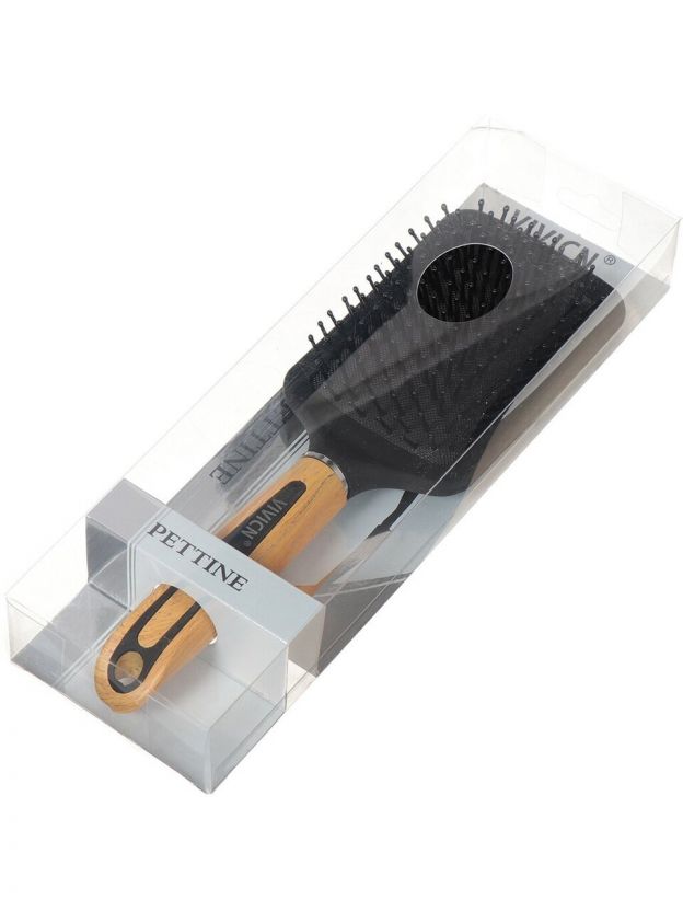 Расческа массажная, 25 х 7.5 см, пластик, деревянная ручка, квадратная, Y445