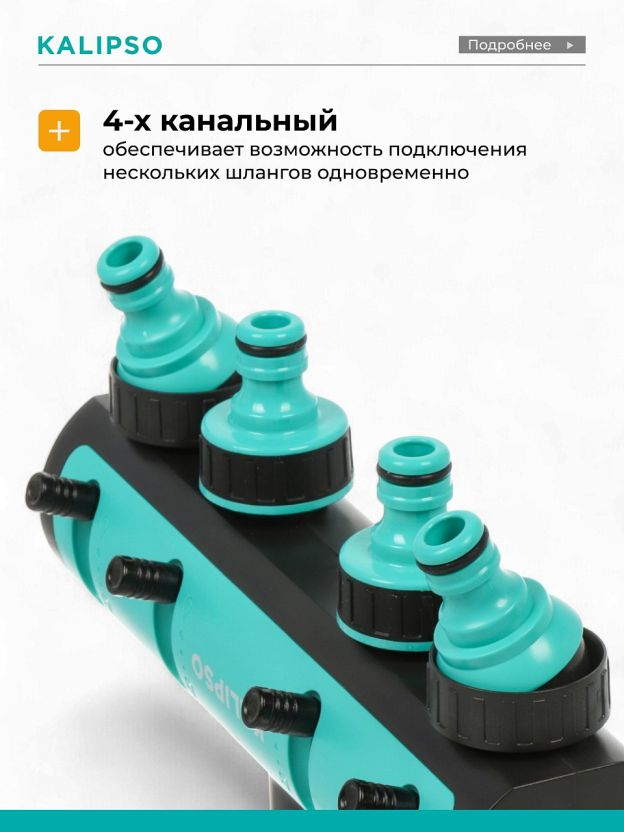 - 4-х канальный: обеспечивает возможность подключения нескольких шлангов одновременно, что делает процесс полива более эффективным и удобным.