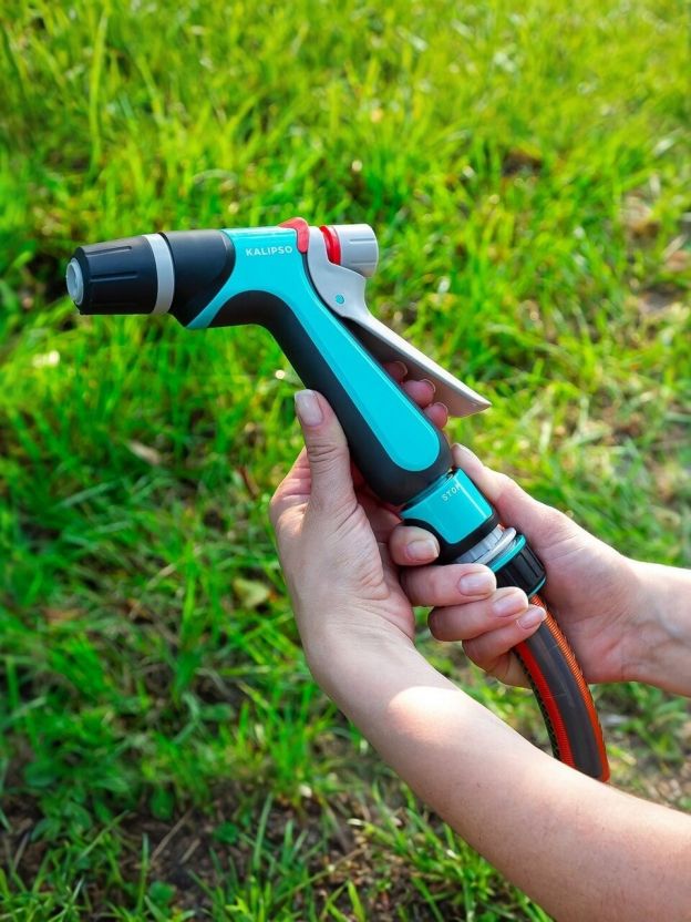 - семь режимов полива для различных задач: от деликатного орошения до мощной струи для очистки дорожек или инвентаря;
