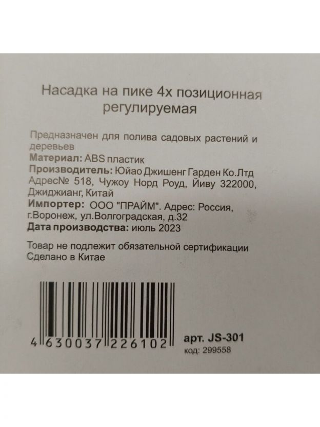 Разбрызгиватель 4 режима на ножке Grandy JS-301 — эффективное решение для полива газона и огорода. Быстросъемное подключение экономит время, а ABS-пластик гарантирует долговечность. Регулируемые режимы позволяют выбрать оптимальный вариант полива: круг или квадрат. Удобная установка на колышке обеспечивает устойчивость. Выгода: равномерный полив без лишних усилий, экономия воды и времени.