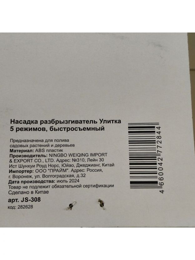 Разбрызгиватель 5 режимов, стационарный, быстросъемный, Grandy, JS-308
