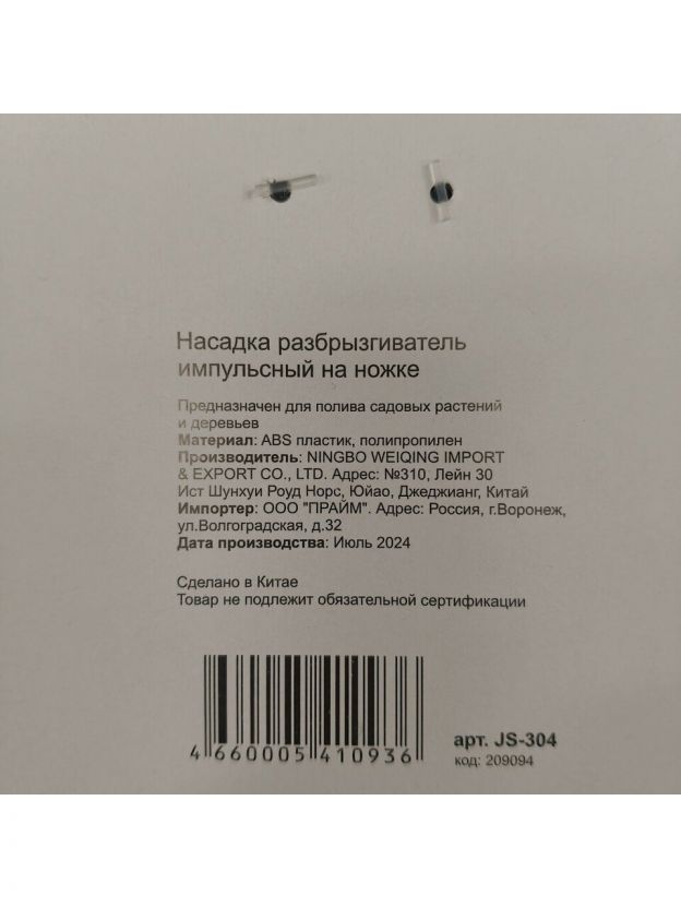 Разбрызгиватель импульсный, на ножке, быстросъемный, Grandy, JS-304