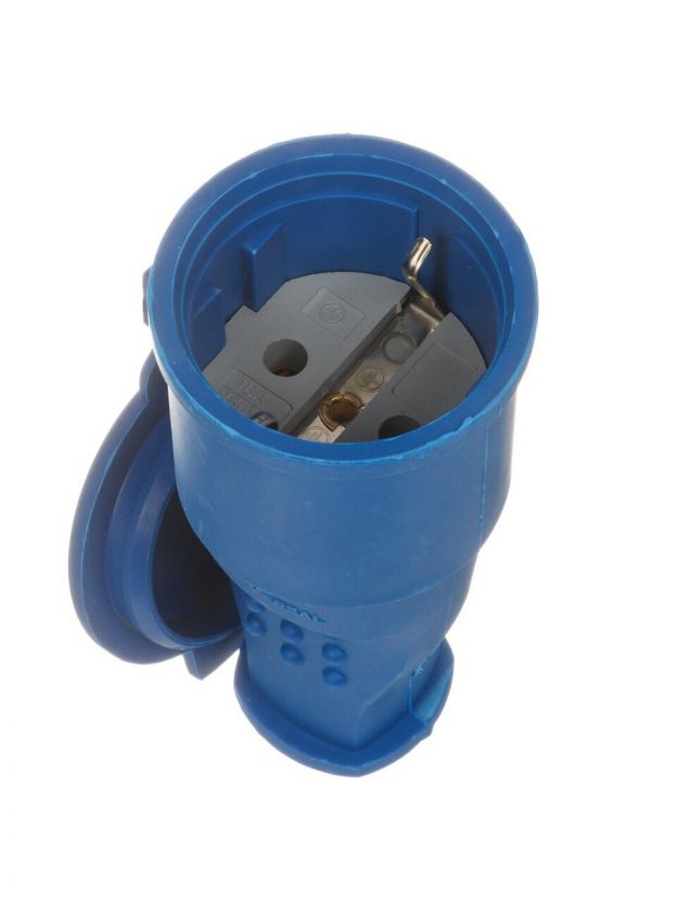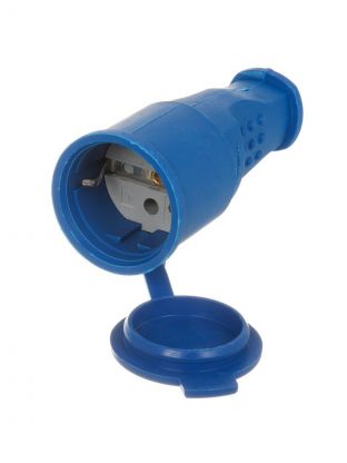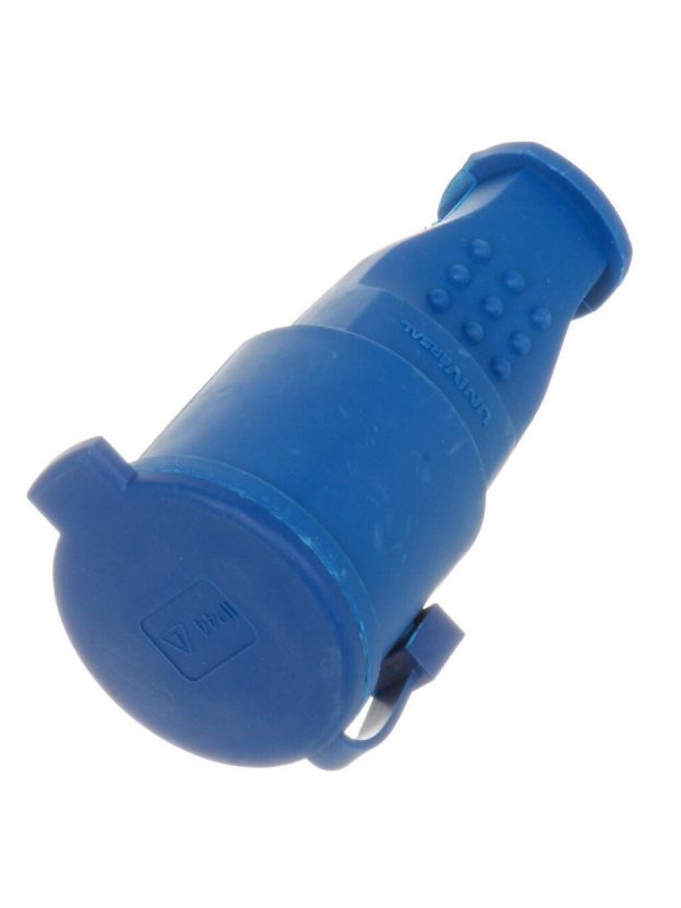 Разъем штепсельный 1 полюс, с заземлением, 16 А, 250 В, IP44, синий, с заглушкой, каучук, UNIVersal, 3038