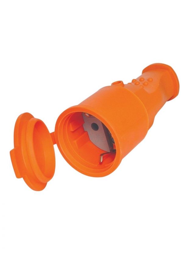 Разъем штепсельный с заземлением, 16 А, IP44, оранжевый, с заглушкой, каучук, UNIVersal, 3038