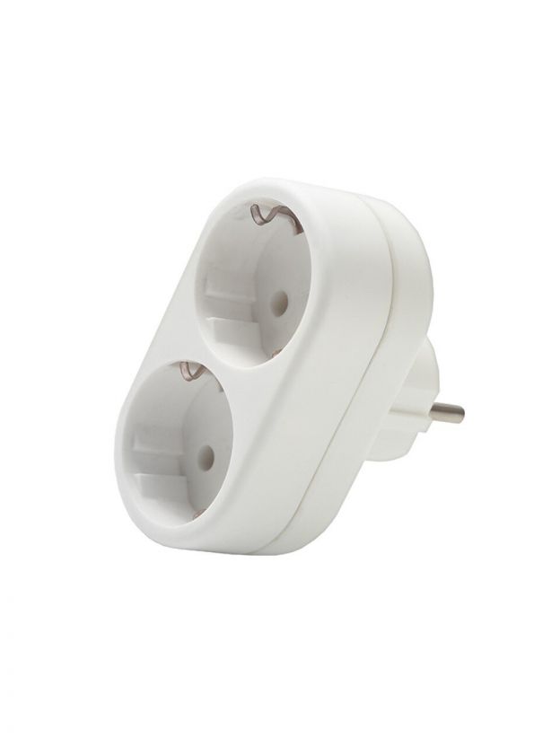Разветвитель 2 гнезда, с заземлением, плоский, 16 А, 250 В, 3500 Вт, Domtok, 2653