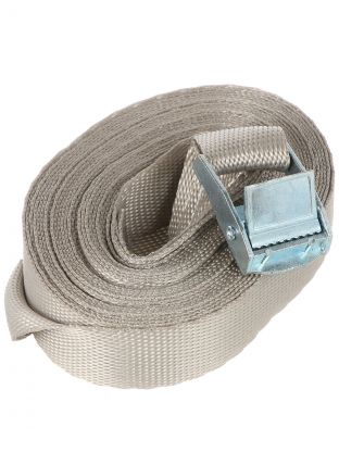 Ремень рассчитан на нагрузку до 250 кг, что подходит для крепления мебели, техники и других тяжёлых предметов. Кольцевой фиксатор обеспечивает надёжную фиксацию без проскальзывания даже при длительной транспортировке.