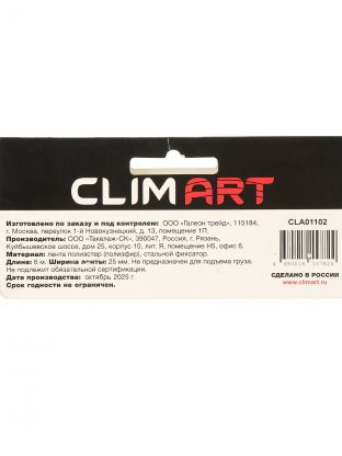 Длина ремня — 6 метров, в комплекте 1 штука, кольцевая конструкция с фиксатором, рассчитан на нагрузку до 250 кг. Производится брендом Clim Art (артикул CLA01102), страна продавца — Россия.