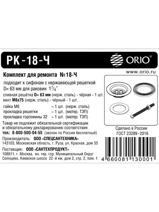 Закажите ремкомплект Orio РК-18-Ч прямо сейчас — получите надежность, гарантию производителя и быструю доставку по России. Решайте сантехнические задачи без лишних затрат!
