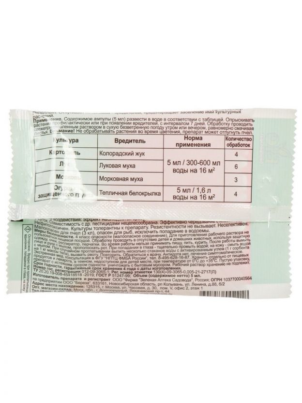 Репеллент Сочва, от комплекса вредителей на растениях, ампула, 5 мл, Зеленая аптека Садовода