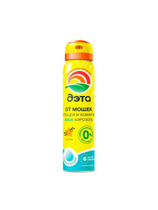 Репеллент от клещей и комаров Дэта Аква – эффективная защита от насекомых до 6 часов для взрослых. Идеальное решение для прогулок, отдыха на даче и дома. Аэрозольный формат облегчает нанесение, не оставляет следов и безопасен для кожи. Объем 100 мл удобно брать с собой. Защищает от комаров, клещей, мошек, мокрецов, слепней, москитов, блох.