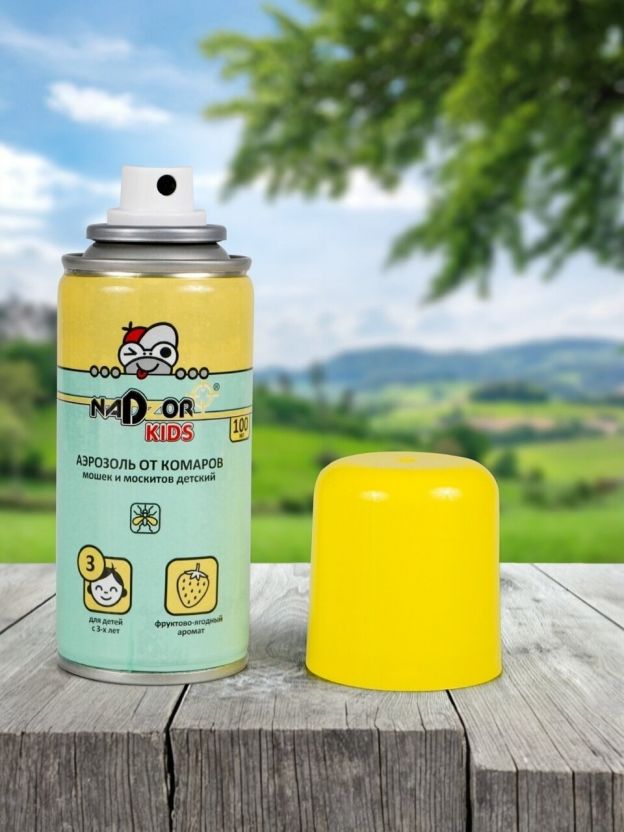 Репеллент от комаров Nadzor для детей — эффективная защита от комаров, мошек, мокрецов и москитов на водной основе. Специальная формула с пропиленгликолем и деионизированной водой безопасна для кожи и разрешена к применению детям от 3 лет. Удобный аэрозоль подходит для использования дома и на улице, обеспечивая спокойствие и комфорт. Объем 100 мл — оптимальный выбор для семьи.