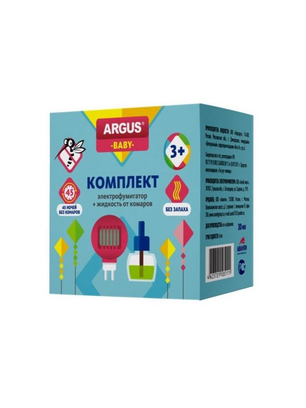 Репеллент от комаров Argus Baby — эффективная и безопасная защита для детей. Фумигатор с жидкостью без запаха обеспечивает спокойный сон и комфорт в течение 45 ночей. Компактный объем 30 мл идеально подходит для использования в детских комнатах и других помещениях. Артикул АR-5.