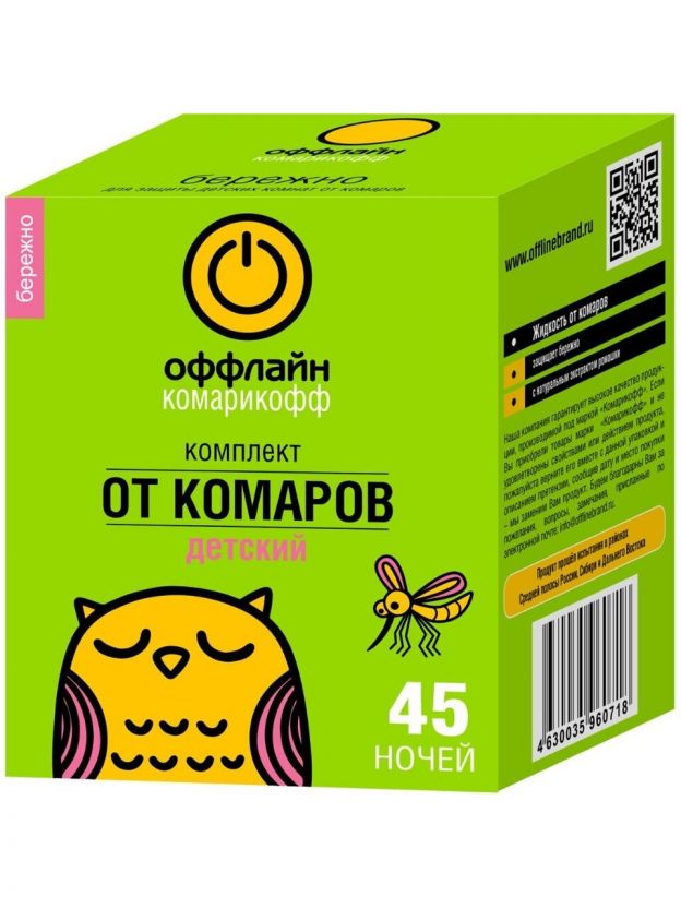 Репеллент от комаров, фумигатор с жидкостью, для детей, 45 ночей, Комарикофф оффлайн, Бережно, 30 мл, OF01060301