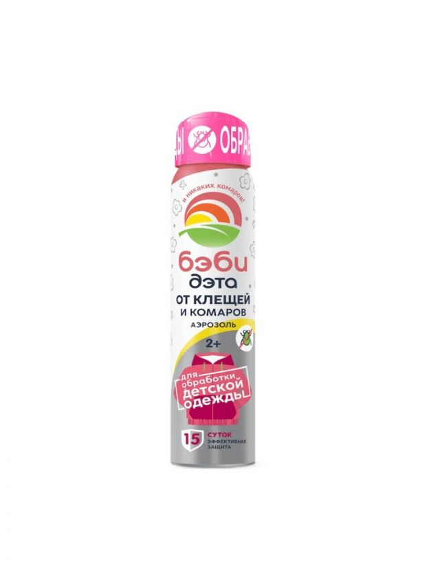 Репеллент от комаров, клещей, аэрозоль, для обработки одежды с 2-х лет, для детей, Бэби Дэта, 100 мл