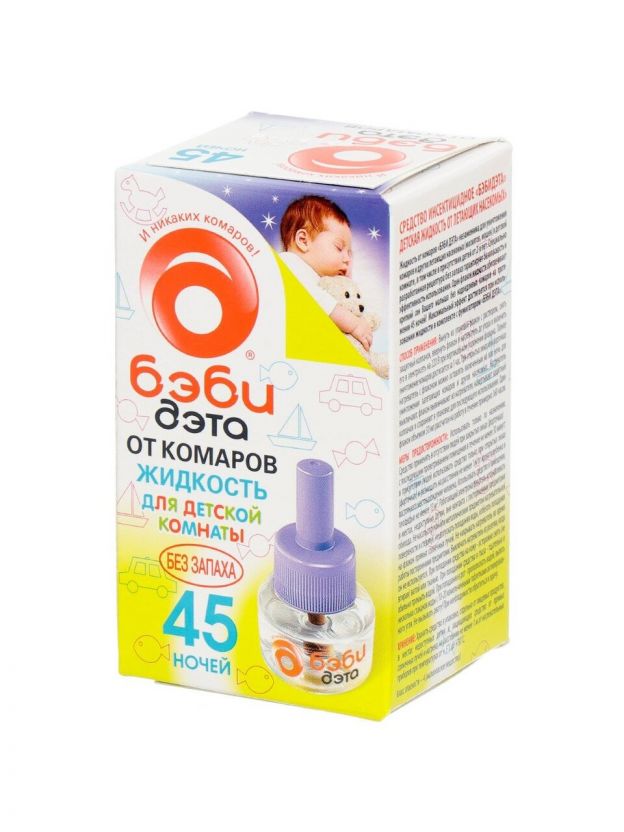 Жидкость для фумигатора "Бэби Дэта" — эффективная защита детей от комаров в помещении. Подходит для использования в детских комнатах, не имеет запаха, обеспечивает спокойный сон и безопасность малышей на протяжении 45 ночей. Объем 30 мл оптимален для длительного применения. Выгода: избавление от комаров без лишних хлопот и забот о здоровье детей.