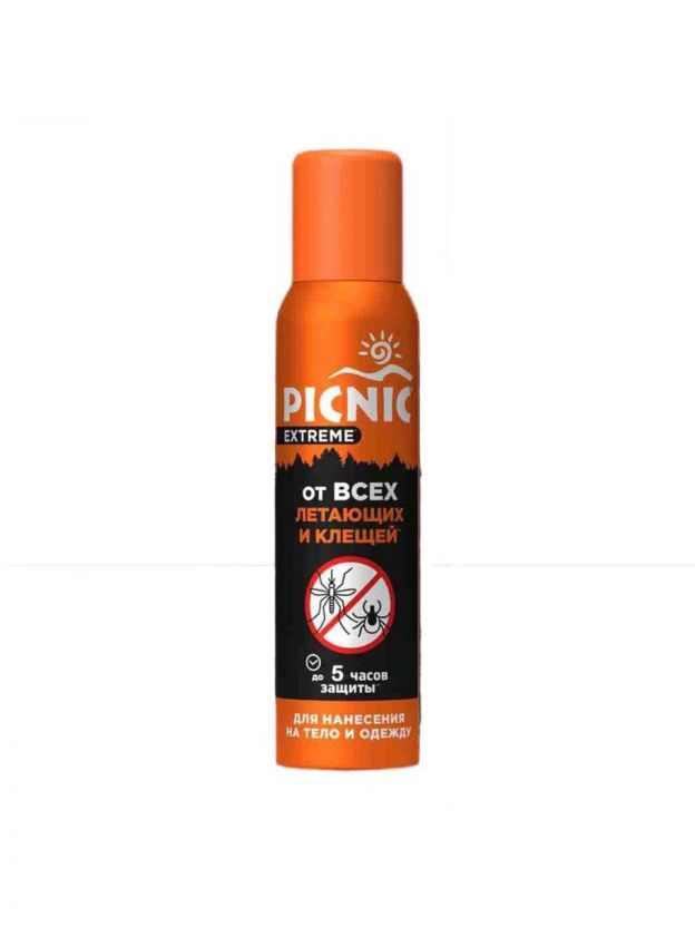Репеллент Picnic Extreme — эффективная защита от летающих насекомых и клещей для взрослых. Аэрозоль объемом 150 мл подходит для использования на улице и в помещении, безопасен для кожи. Надежное средство для отпугивания комаров, клещей, блох, москитов, мокрецов и слепней. Идеален для дачи, отдыха на природе и дома.
