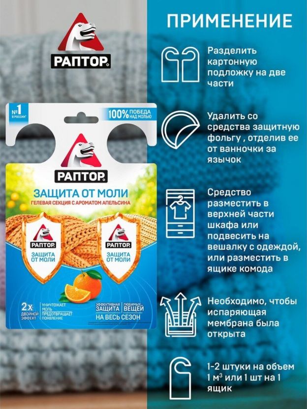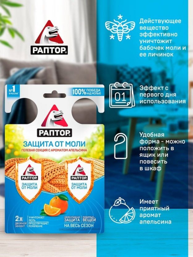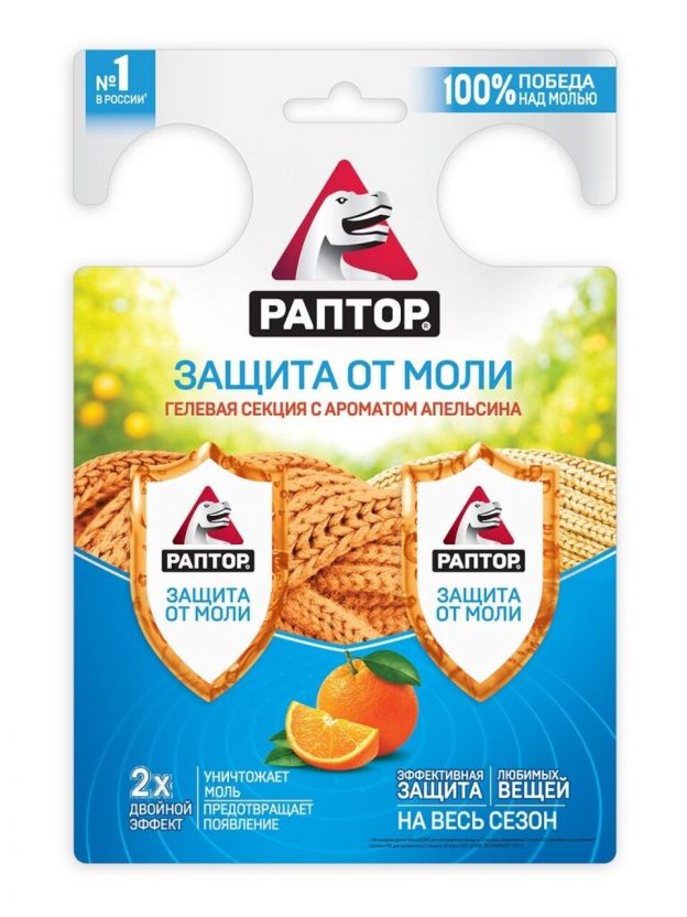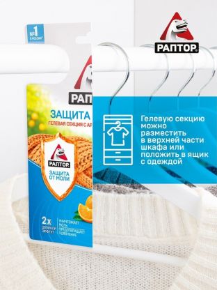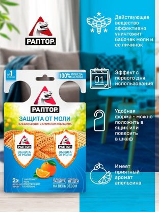Репеллент от моли, гелевая секция, с ароматом апельсина, Раптор, Двойной эффект, RPT0005