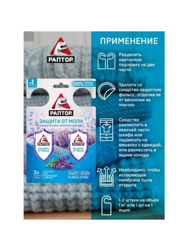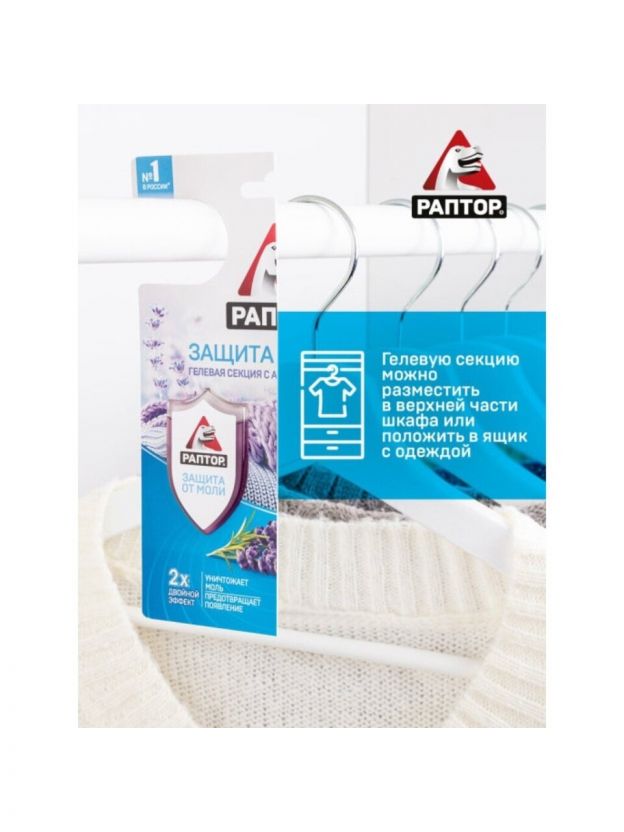 Репеллент от моли, гелевая секция, с ароматом лаванды, Раптор, Двойной эффект