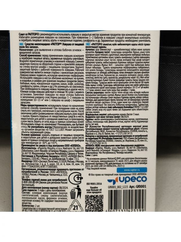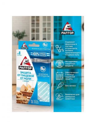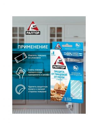 Репеллент от моли пищевой, пластина, ловушка, Раптор, 2 шт