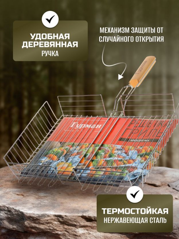 Решетка для барбекю Гурман легкая и компактная. Ее удобно брать с собой на пикник или в поход.