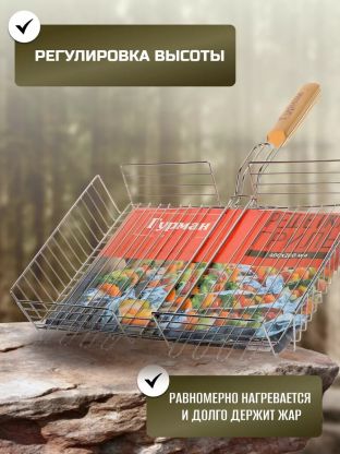 Решетка барбекю 400х280х60 мм, Гурман, 903, хром, сталь, 4 уровня, рукоятка дерево, 22003