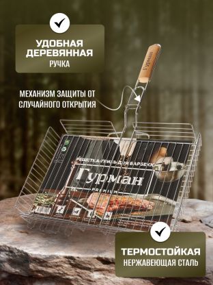 • Надёжные материалы: стальная решетка с хромированием, деревянная рукоятка — долговечность и защита от перегрева.
