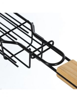 Решетка барбекю 430х240х40 мм, Гурман, хром, рукоятка дерево, плоская, латун. витая проволока, для овощей, CB1903