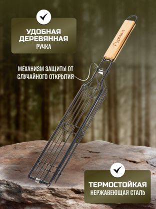 Решетка для барбекю Гурман повысит уровень Вашего комфорта на природе. Длинная ручка обеспечит безопасное взаимодействие с продуктами на огне и не позволит обжечься.