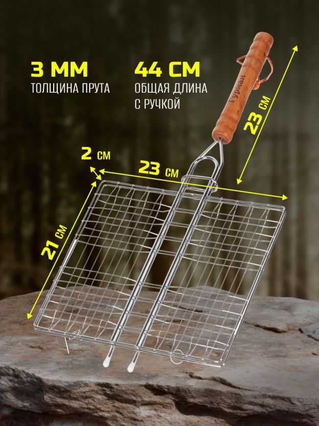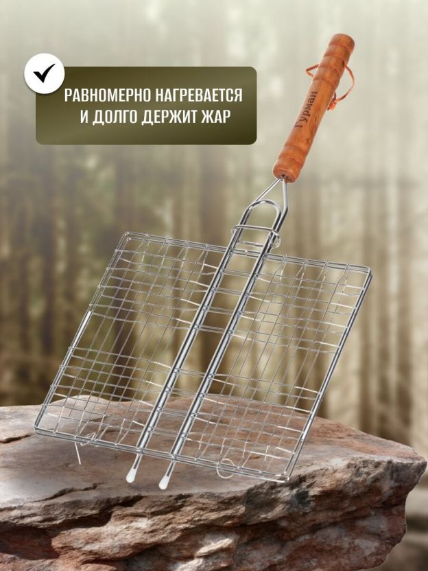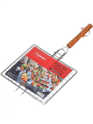 Решетка для барбекю Гурман повысит уровень Вашего комфорта на природе. Динная ручка обеспечит безопасное взаимодействие с продуктами на огне и не позволит обжечься. Компактный размер позволит Вам удобно разместить аксессуар в шкафу для кухонной утвари или в багажнике автомобиля.