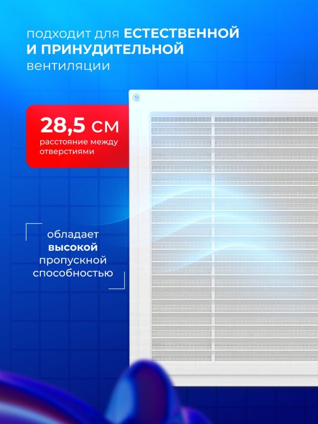 Решетка предназначена для декоративного оформления отверстий которые используются в качестве приточно-вытяжной вентиляции в любых помещениях. Изготовлена из качественного пластика.