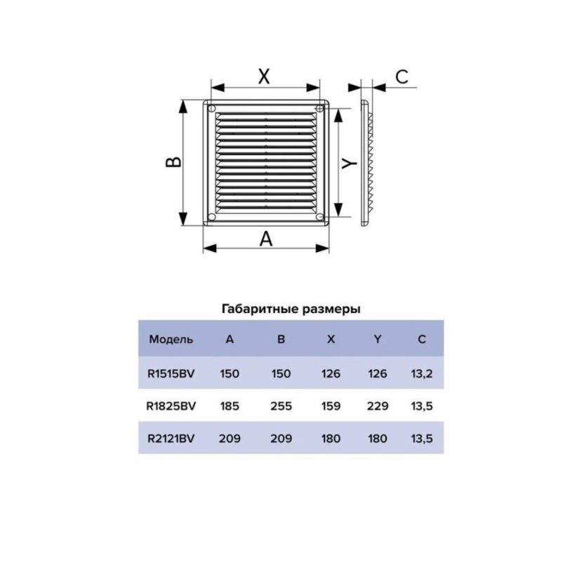 Решетка вентиляционная пластик, разъемная, 150х150 мм, с обратным клапаном, ERA, R1515BV
