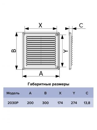 Решетка вентиляционная пластик, разъемная, 200х300 мм, с сеткой, ERA
