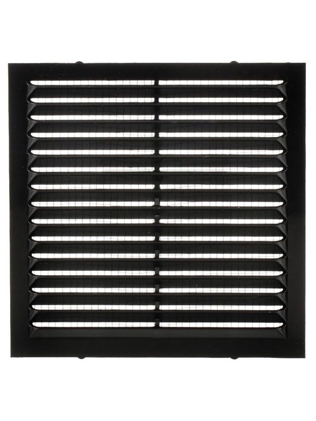 Решетка вентиляционная пластик, вытяжная, 130х130 мм, с сеткой, черная, Viento