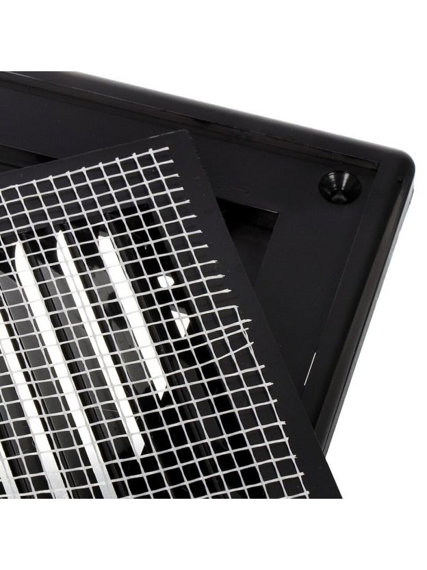 Решетка вентиляционная пластик, вытяжная, 150х150 мм, с сеткой, черная, Viento