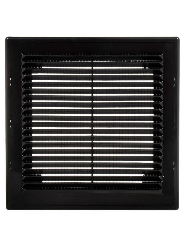 Решетка вентиляционная пластик, вытяжная, 250х250 мм, с сеткой, черная, Viento