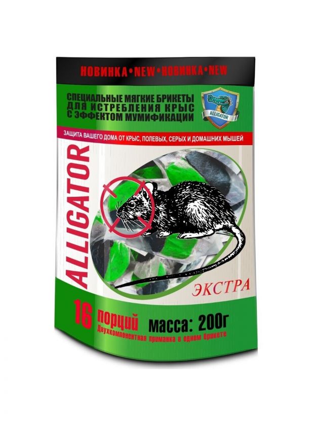 Родентицид Аллигатор, от грызунов, дой-пак, мягкие брикеты, 200 г