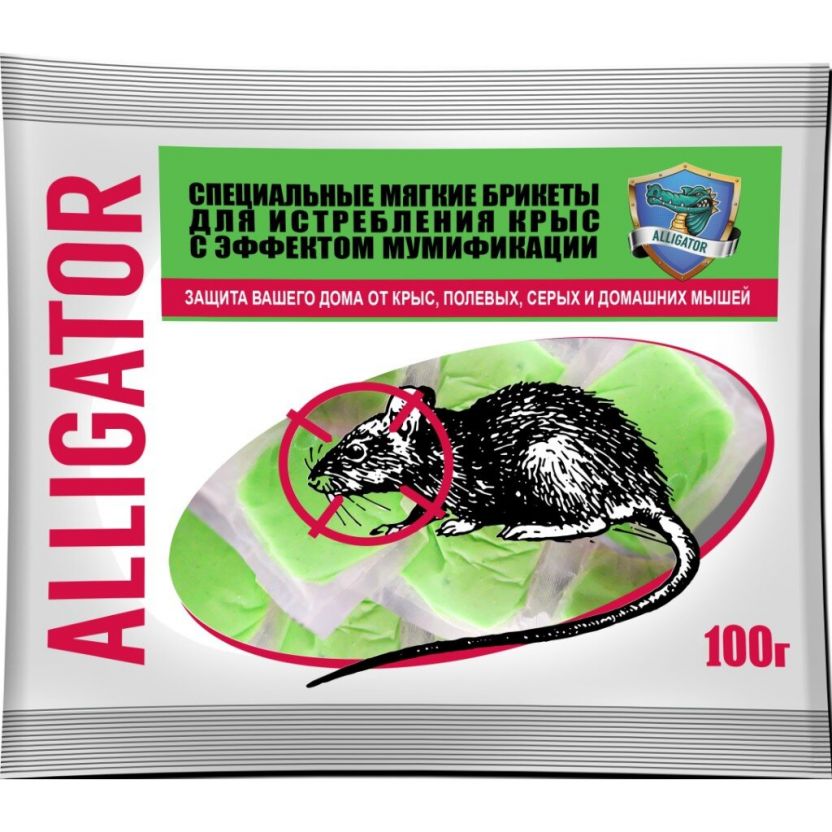 Родентицид Аллигатор - готовая зерновая приманка для уничтожения всех видов крыс и мышей.