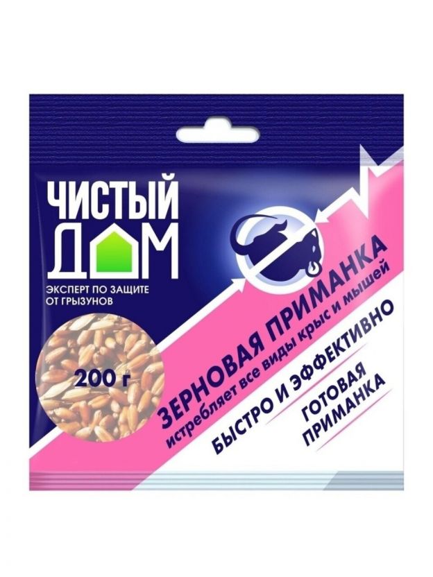Родентицид Чистый Дом, от крыс и мышей, зерно, 200 г