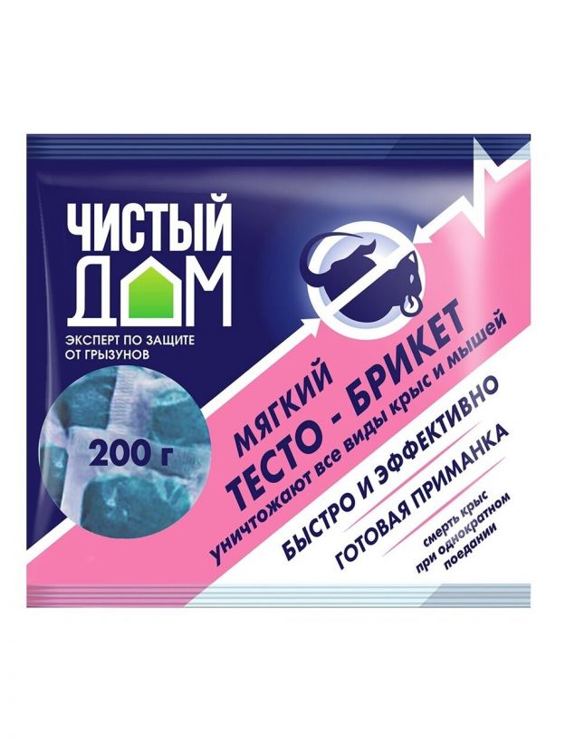 Родентицид Чистый Дом, от крыс, тесто-брикет, 200 г