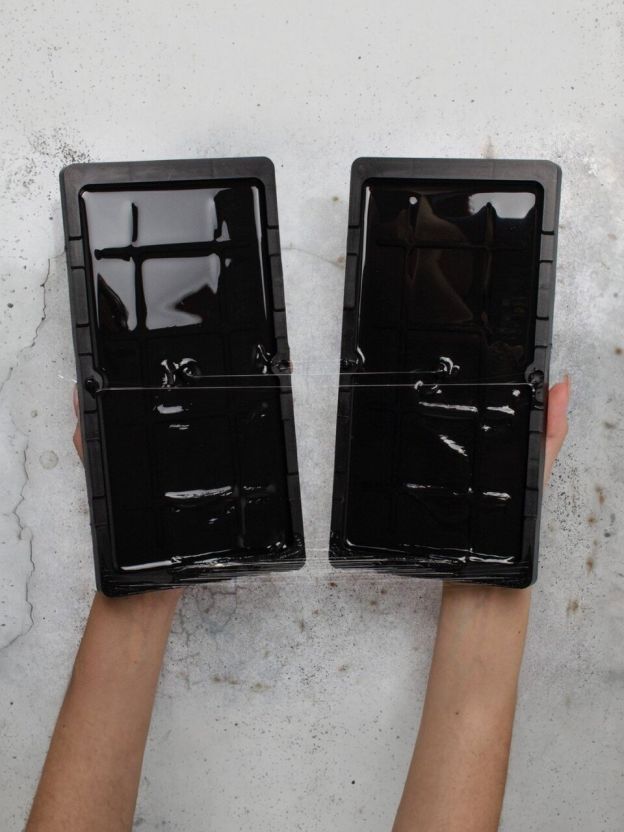 - на пластиковую подложку нанесен клеевой слой;